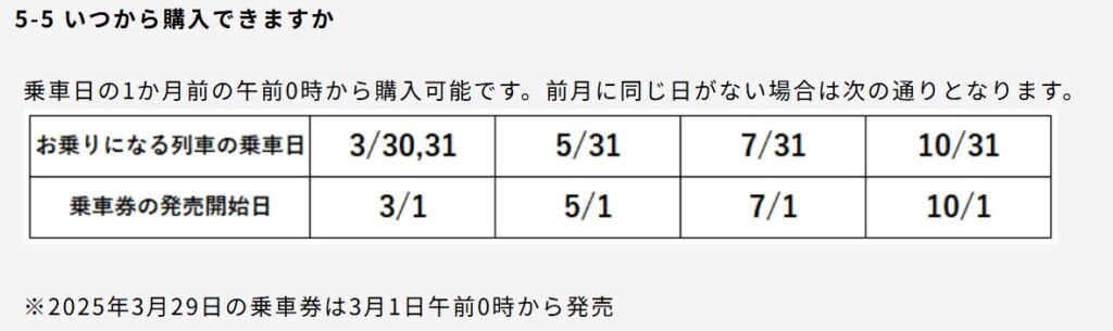 個人向けの予約は、乗車日の1か月前の午前0時からできます。