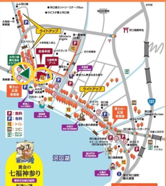 河口湖紅葉まつり2025屋台の出店場所、営業時間、おすすめメニューを紹介しました。