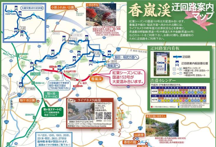 まずは、「豊田市足助観光協会」から出ている迂回マップは、ぜひ参考にしてください。